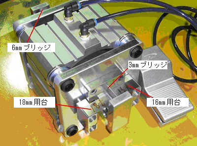 ブリッジ機 29万円 各種ブリッジ幅可能。シリンダー駆動 金型:オス型は上下・前後4回使用可。 メス型は表裏2回使用可 |