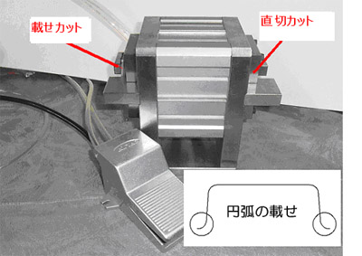 隅切機 29万円 直切・載切可能。シリンダー駆動 金型:オス型は上下・裏表4回使用可。 メス型は上下2回使用可 |