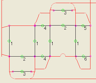 ■データを開いたら、最短ではワンクリックで加工を開始できます。DXFデータであっても、罫線のレイヤー名を事前に決めておけば素早く加工に移れます。罫線はコンピュータの画面上で長さごとに番号が付けられ、その番号に一致するトレーの位置へ自動的に振り分けられます。もう同じような長さの罫線で作業に迷うことはありません。もちろんブリッジや両端下部の角取りも可能です。
